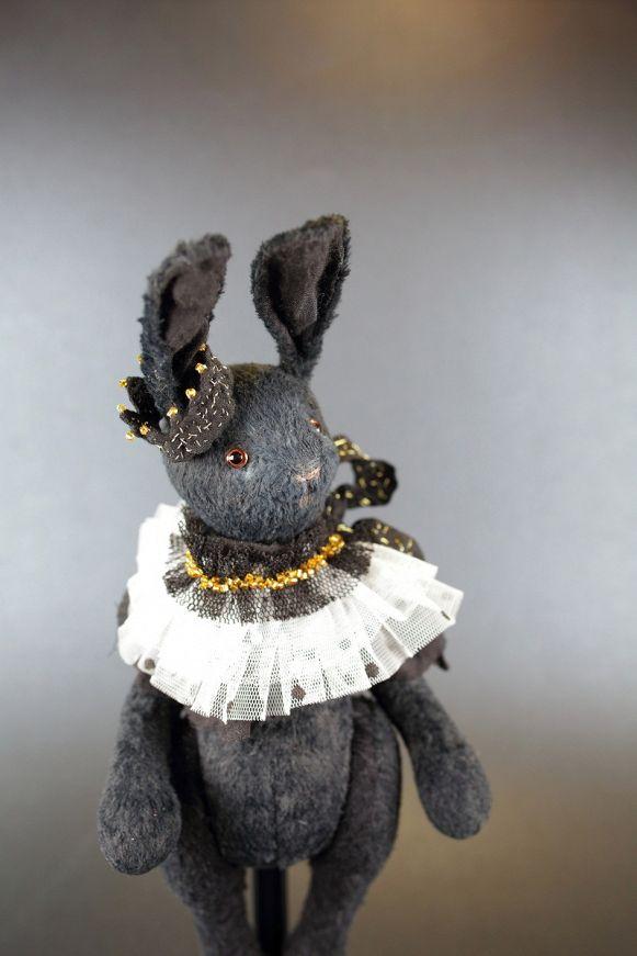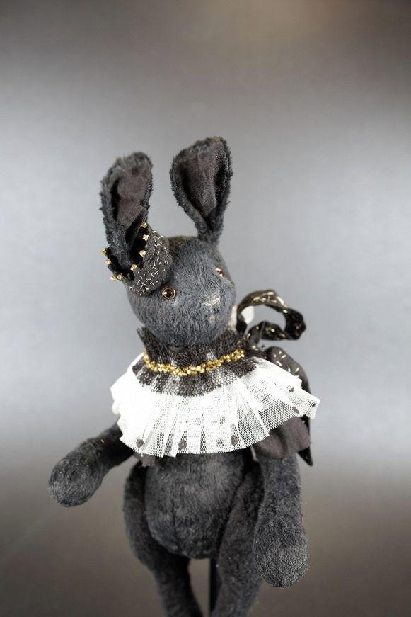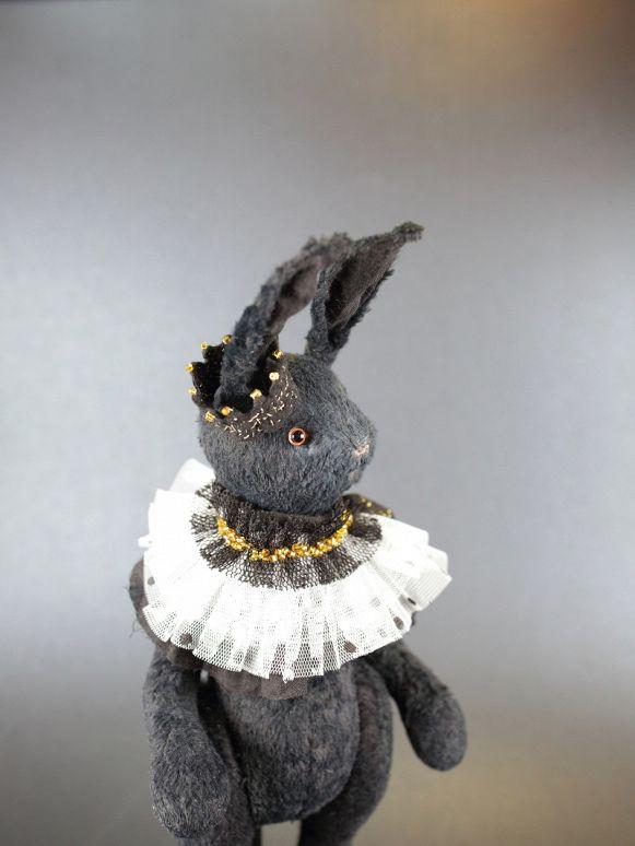 Elegant and strict, this black rabbit embodies the perfect balance between classic and originality. Its image is refined and aristocratic: a lush jabot adorns its neck, while a delicate crown on its head highlights its noble character.
