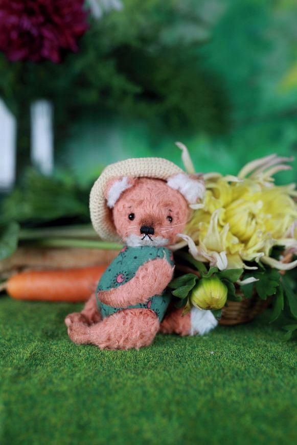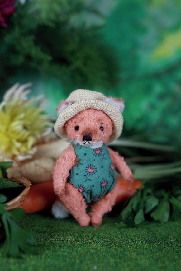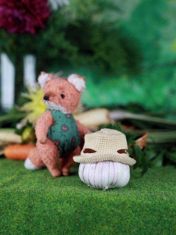 Faye the Fox, 12 cm - a sweet and charming little fox girl with a warm heart and a hint of forest magic. Made from soft viscose, she wears a cozy romper and a delicate hand-crocheted hat. All her clothing is removable, so you can change outfits and imagine new fairytale adventures.